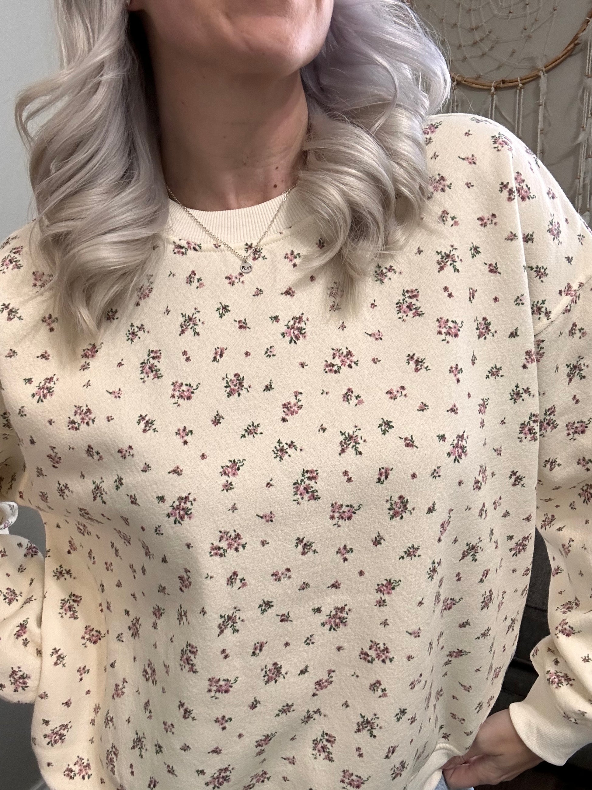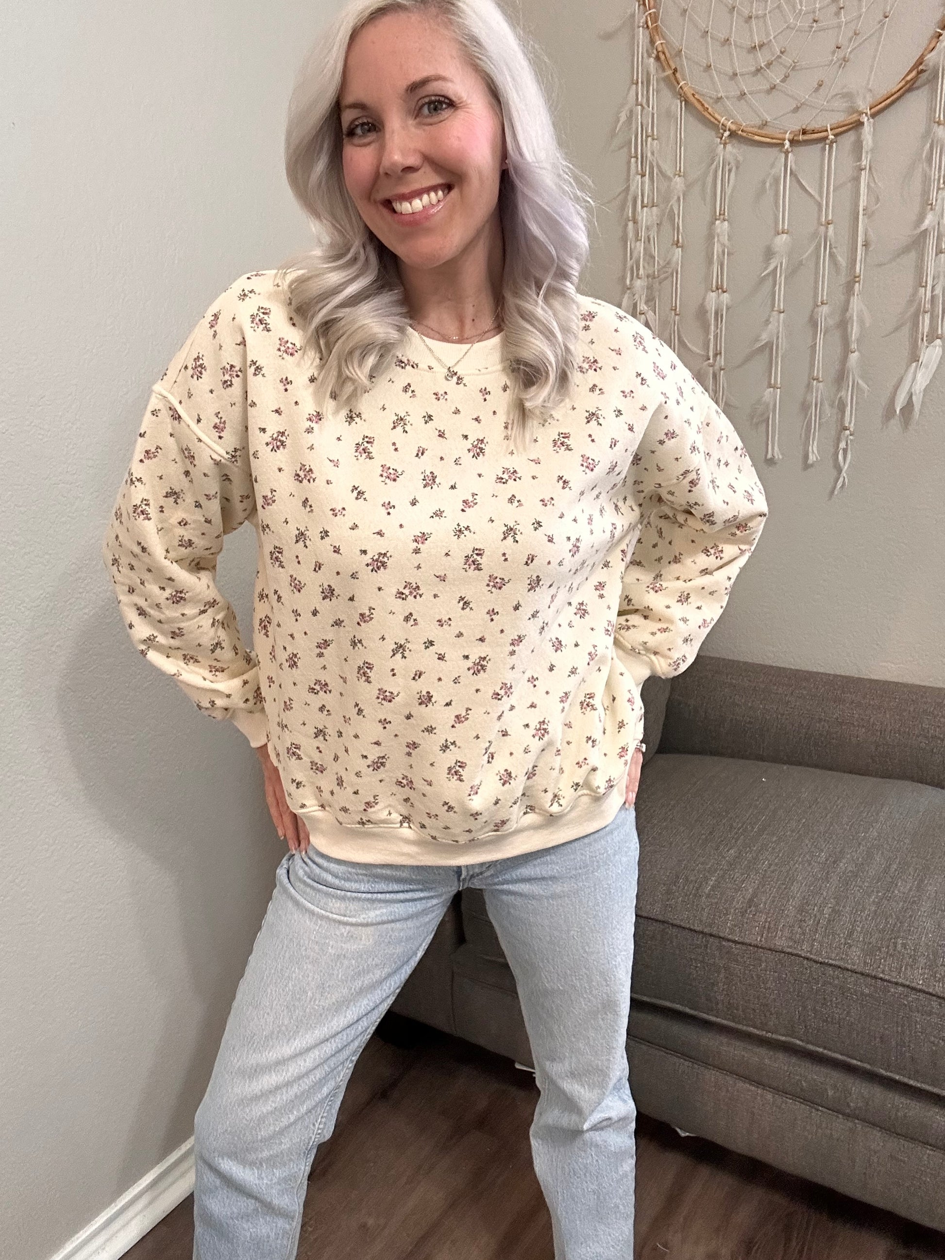 The Garden Morning Pullover has a soft, vintage-cottage feel with its tiny floral print and relaxed, comfy fit. Made from a cozy sweatshirt knit with ribbed trim at the neckline, cuffs, and hem, it’s the perfect lightweight layer for slow mornings, lounging, or pairing with denim for an easy spring-day look.